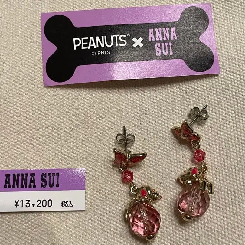 ANNA SUI와 PEANUTS의 콜라보 귀걸이입니다. 새상품. 스누피가 귀엽습니다. 전체 길이 약 3cm. 정가는 13,200엔입니다.