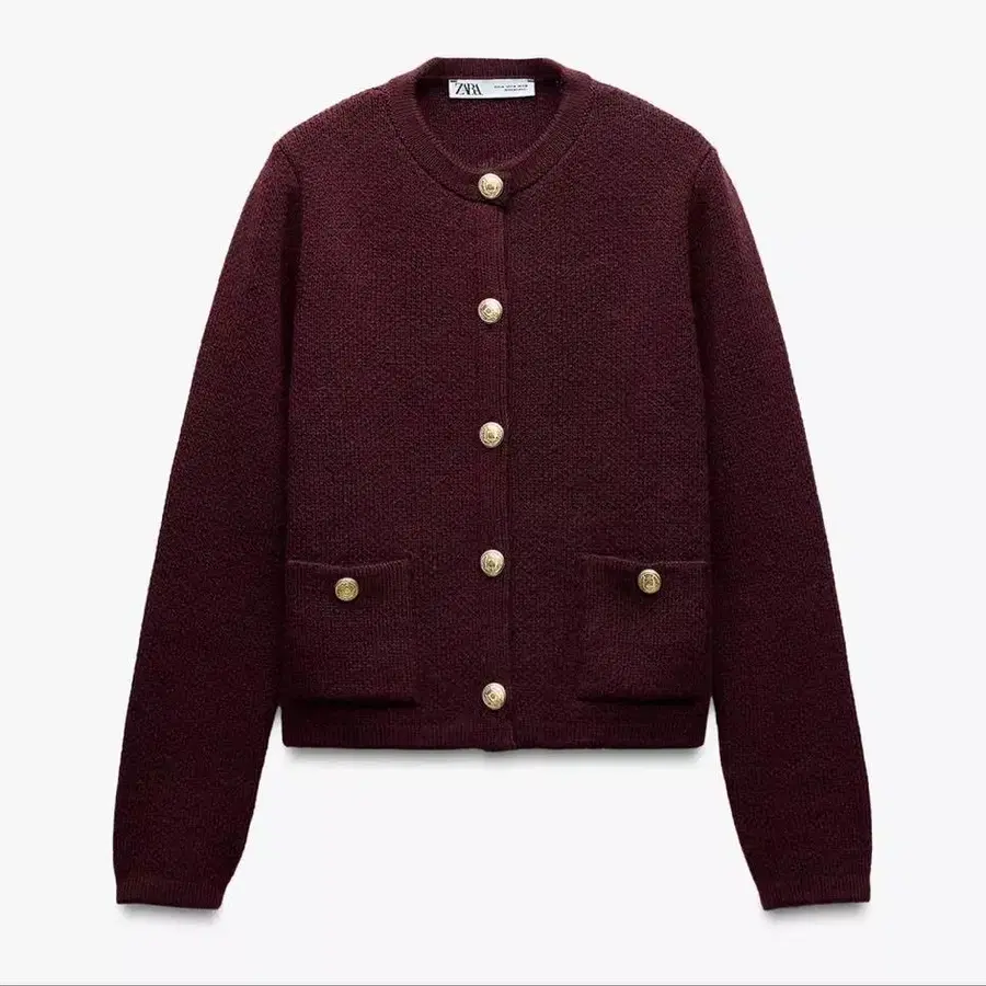 [ ZARA ] 골드 니트 가디건 / 크림슨 / S