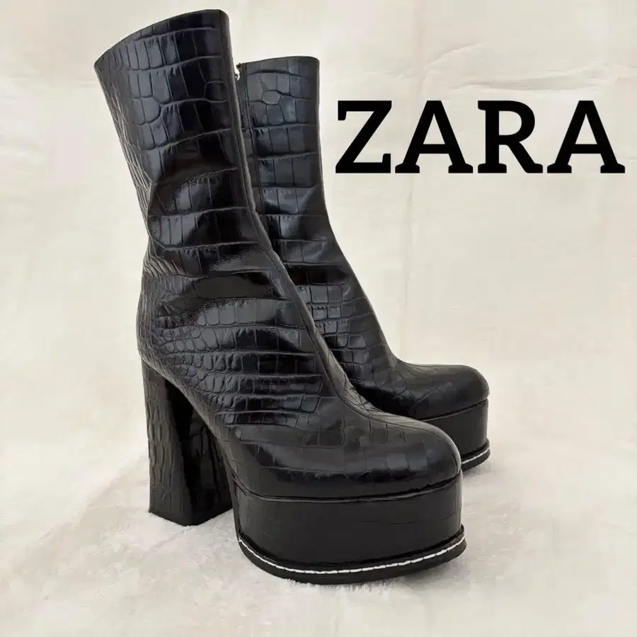 새상품급 ZARA 악어 엠보 사이드 지퍼 숏 부츠 힐 높이 24