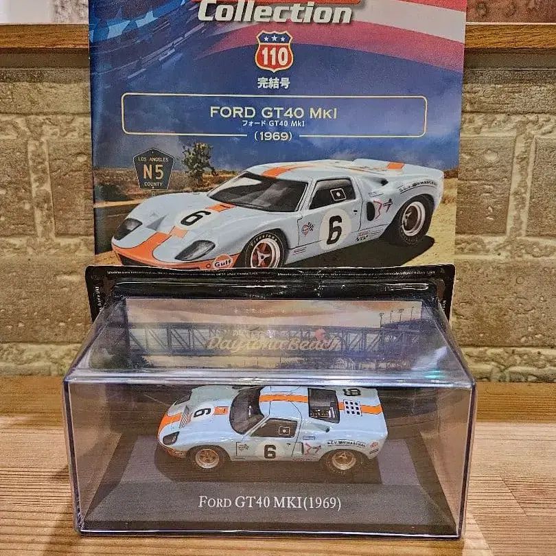 Ford GT40 MkI (1969) 정교한 미니카, 레이스 넘버 6 포함. - 모델: Ford GT40 MkI (1969) - 색상: 화이트/오렌지 - 스케일: 1/43 - 부속품: 케이스 포함 - 특징: 레이스 넘버 6 - 디자인: Daytona Beach 배경 - 시점: 프론트 뷰 방문해 주셔서 감사합니다.