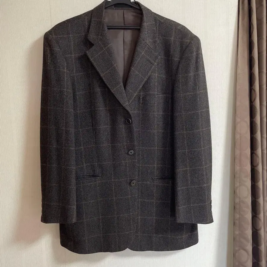 Dankan 다크 브라운 체크 무늬 테일러드 자켓 캐시미어
