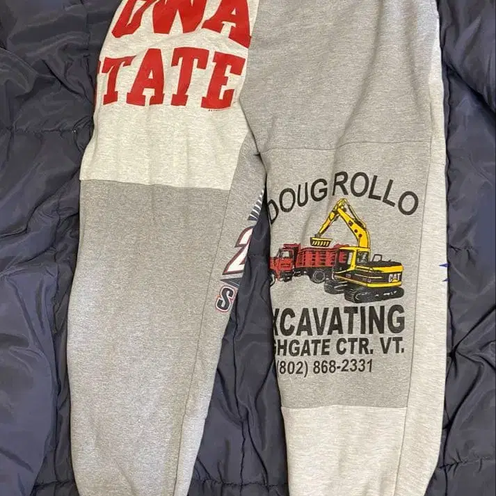 레어 스웨트 팬츠입니다. 아이오와 주, 독일, 비행기 등 다양한 광고, 로고 등이 들어가 있습니다.