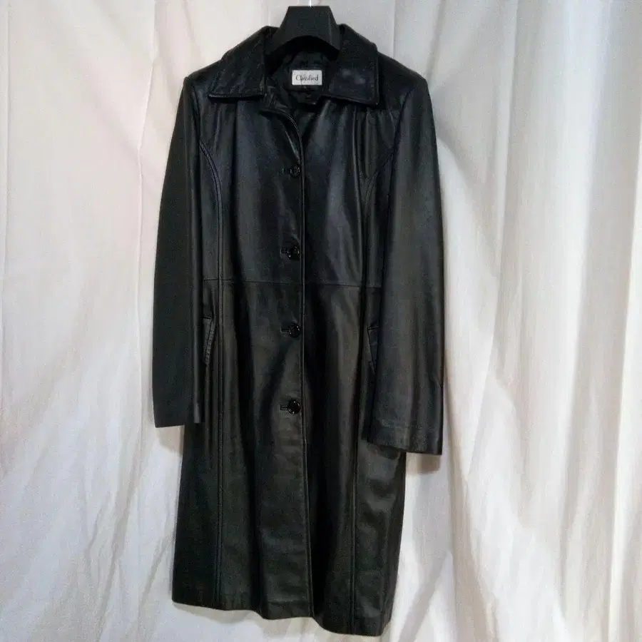Classified 블랙 가죽 롱 코트 양가죽 블랙
