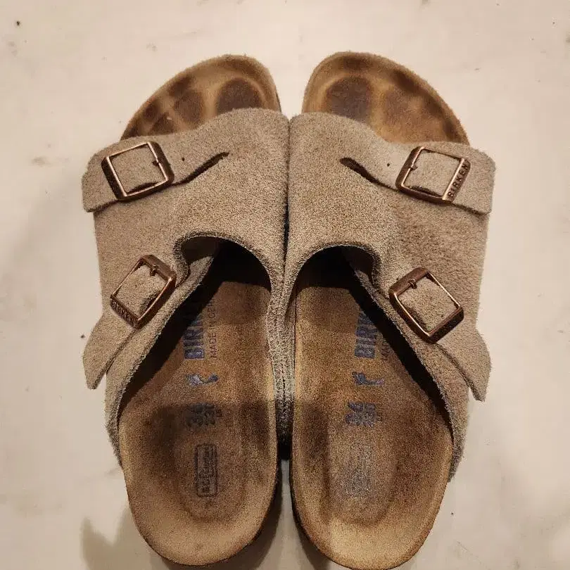스웨이드 소재의 샌들, 2개의 스트랩과 버클로 쾌적한 착용감. - 브랜드: BIRKENSTOCK - 사이즈: 36 - 색상: 토프 - 디자인: 2개의 스트랩과 버클 - 소재: 스웨이드 방문해 주셔서 감사합니다.