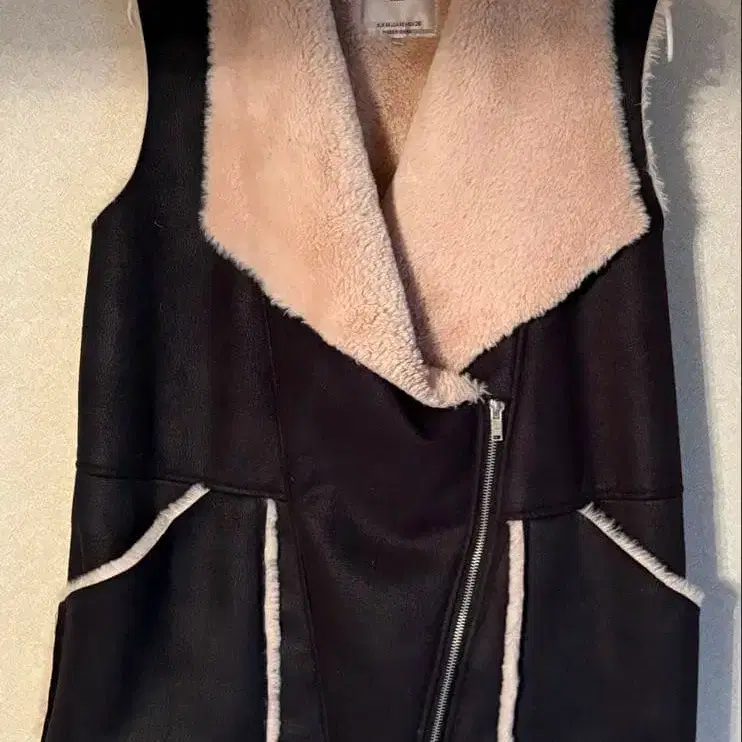 ZARA 인조 모피 베스트 블랙과 베이지