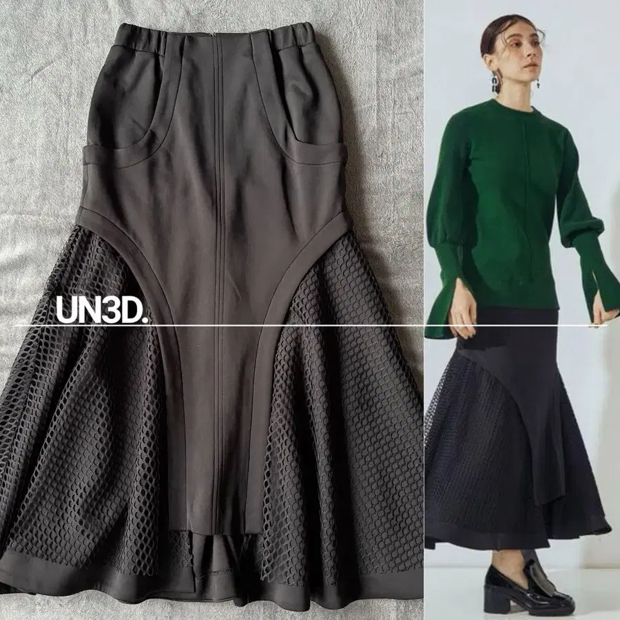 [ 새상품급 ] UN3D. 레이어드라이크 플레어 스커트 블랙 36