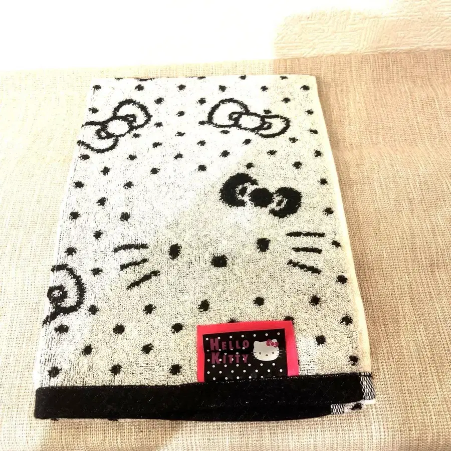 헬로키티 타월 화이트 블랙 리본 도트 디자인 미사용 새상품