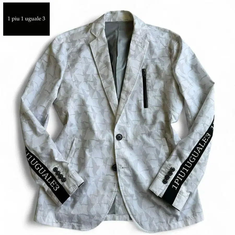 꽃무늬 디자인의 화이트 테일러드 자켓, 지퍼 포켓 있음.
