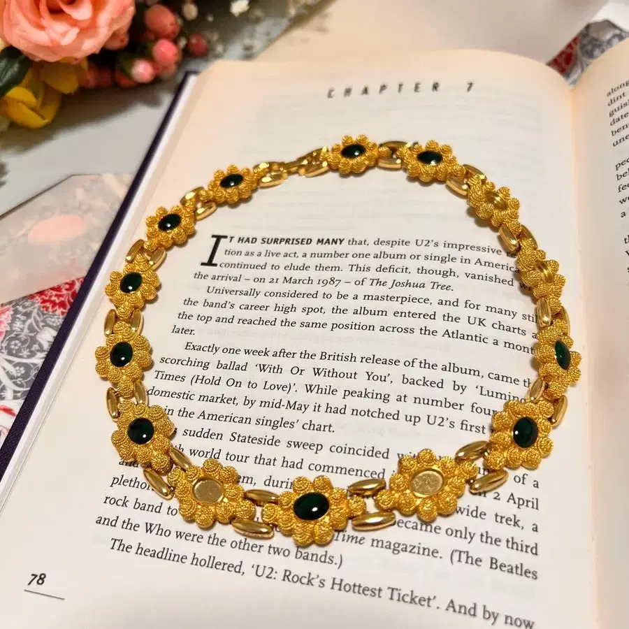 빈티지 꽃 모티브 목걸이 골드 컬러 깊이 있는 그린