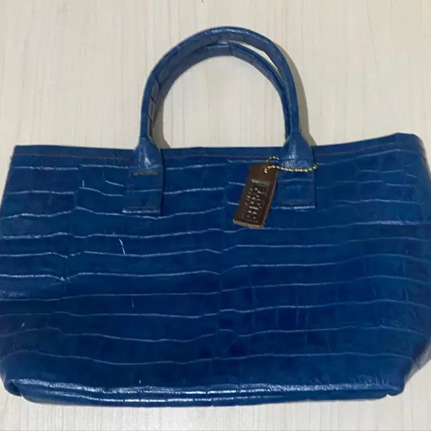 네이비 블루 악어 무늬 가죽 미니 토트백 약간 얼룩 있음