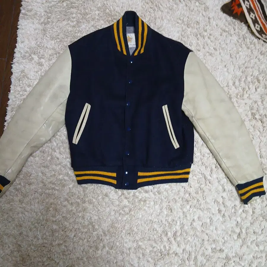 USA 제조 빈티지 골든 베어 소매 가죽 바시티 자켓
