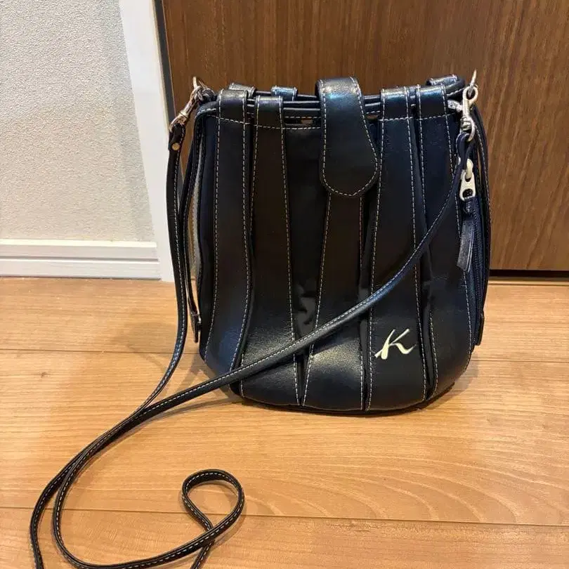 새상품급 Kitamura 키타무라 복조리형 숄더백 가죽 네이비