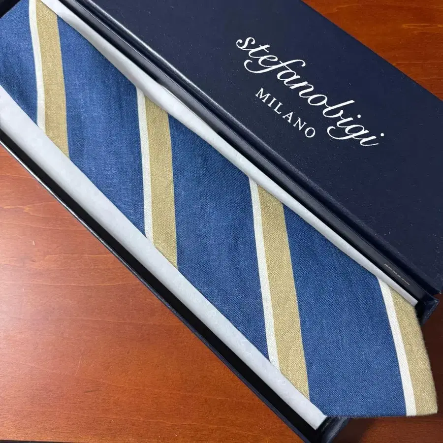 정가 24만 스테파노 비기 린넨 소재 레지멘탈 스트라이프 넥타이