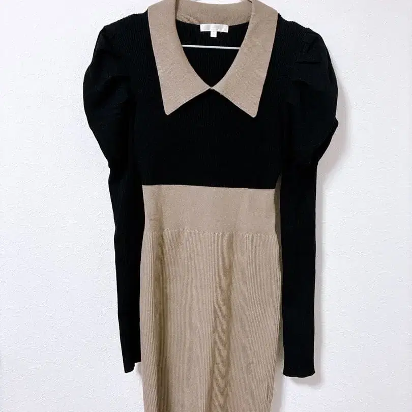 rienda 퍼프 슬리브 카라 부착 니트 원피스