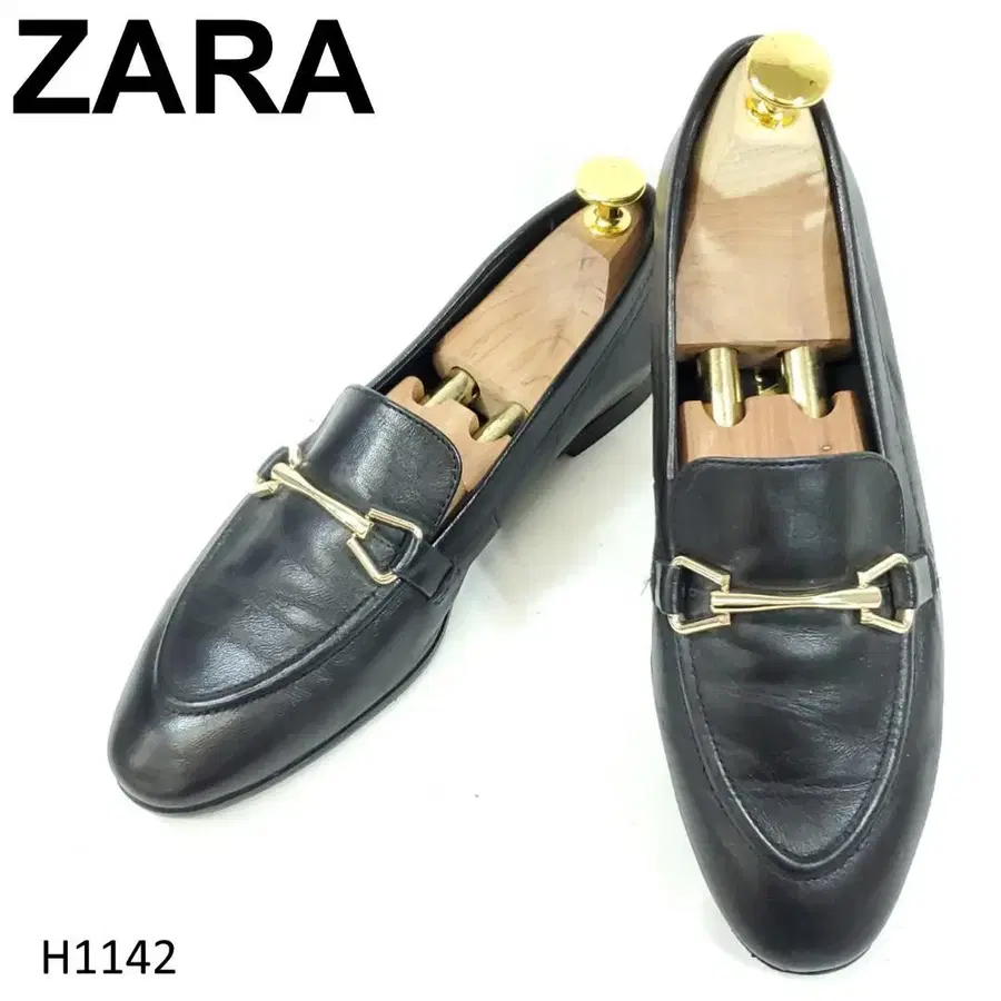 자라 로퍼 골드 금장 장식 아몬드 토 블랙 EU35 가죽