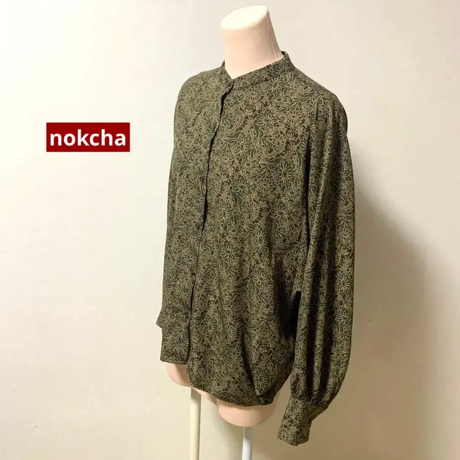 녹차 노크차 꽃무늬 돌먼 슬리브 블라우스