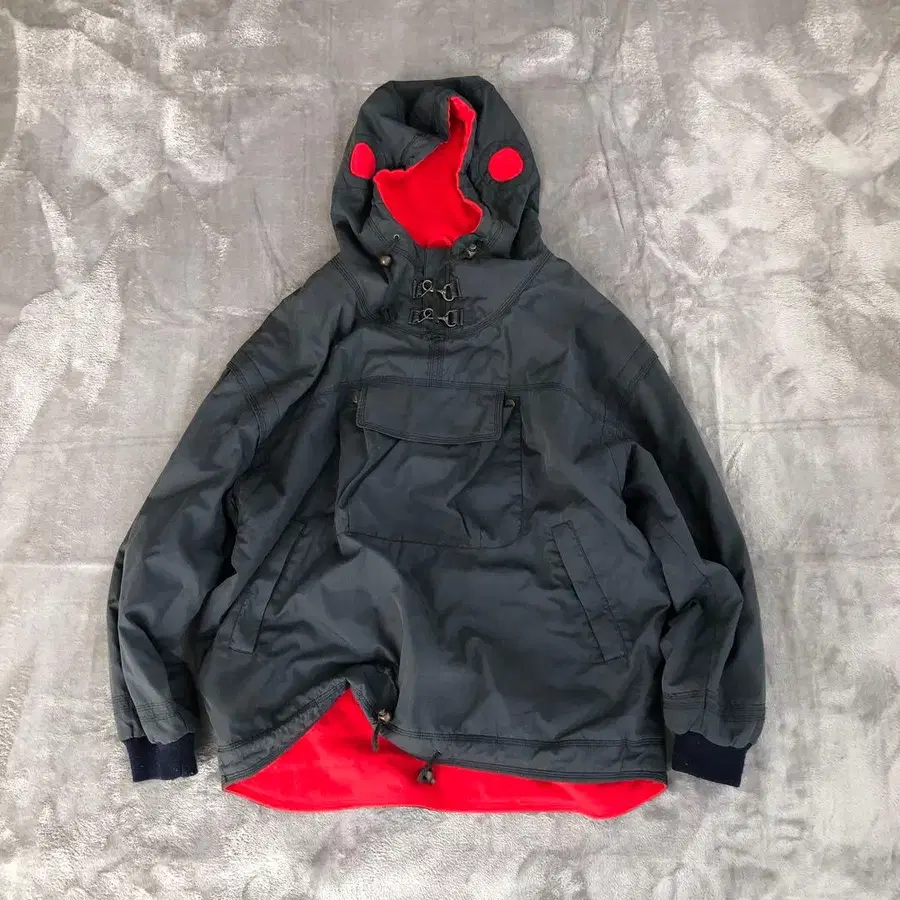 충전솜 아노락 후드티 블랙 블랙 레드 풀오버 후드티 페이드 흑먹색