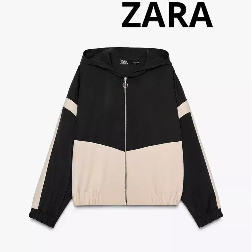 • ZARA 후드 부착 블랙 점퍼