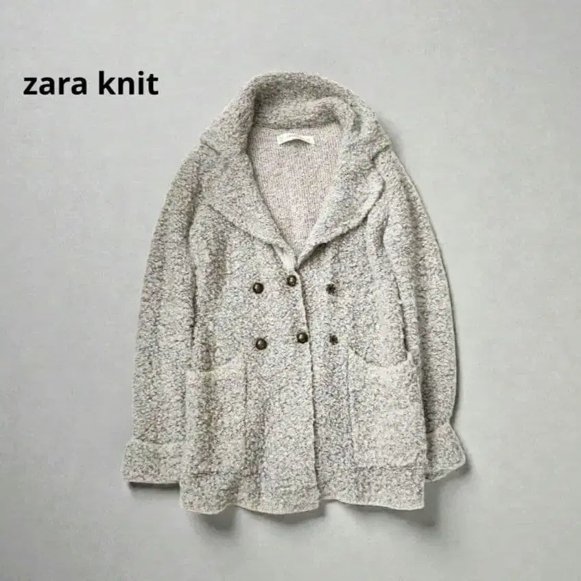 ZARA 자라 니트 알파카 혼방 부클레 코트 가디건 M 그레이 더블 버튼 여성용 가을/겨울 니트 코트 포근함