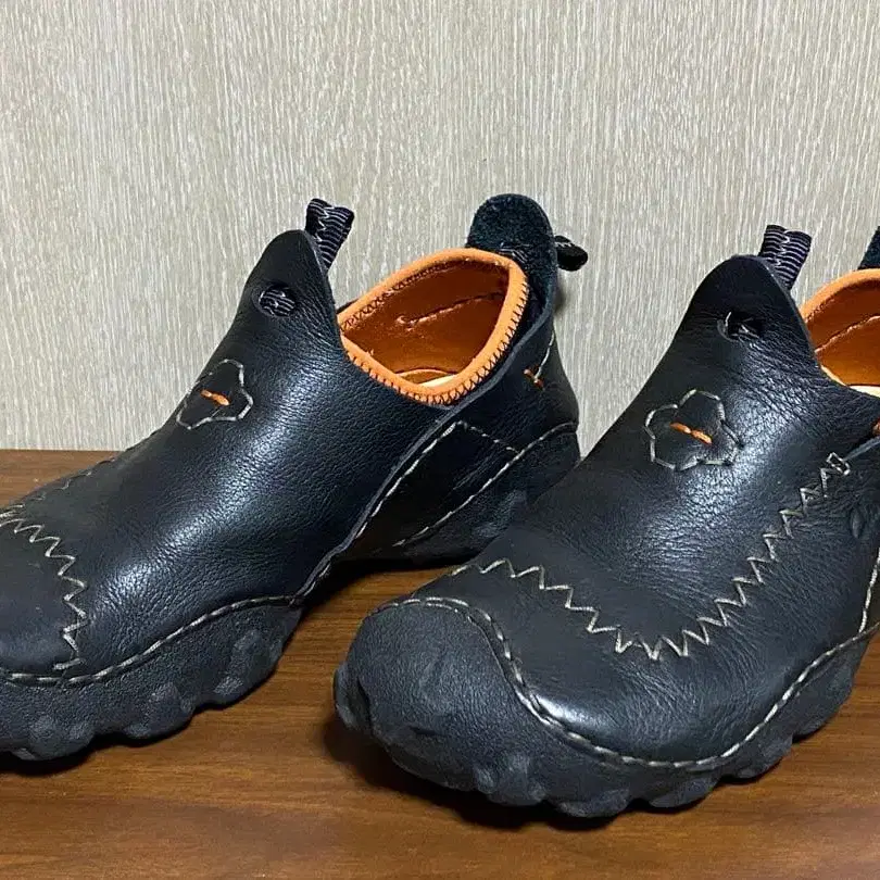 내추럴한 주름감이 있는 가죽을 사용한 슬립온 타입의 아웃도어 신발입니다. 안쪽에는 신축성이 높은 저지 소재를 사용하여 핏감도 뛰어난 신발입니다. 투박한 밑창도 존재감을 자아내며, 시내에서도 신을 수 있는 한 켤레입니다.