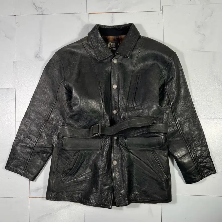 70~80년대 가죽 하프 코트 L 상당 허리 벨트 포함 카우 가죽