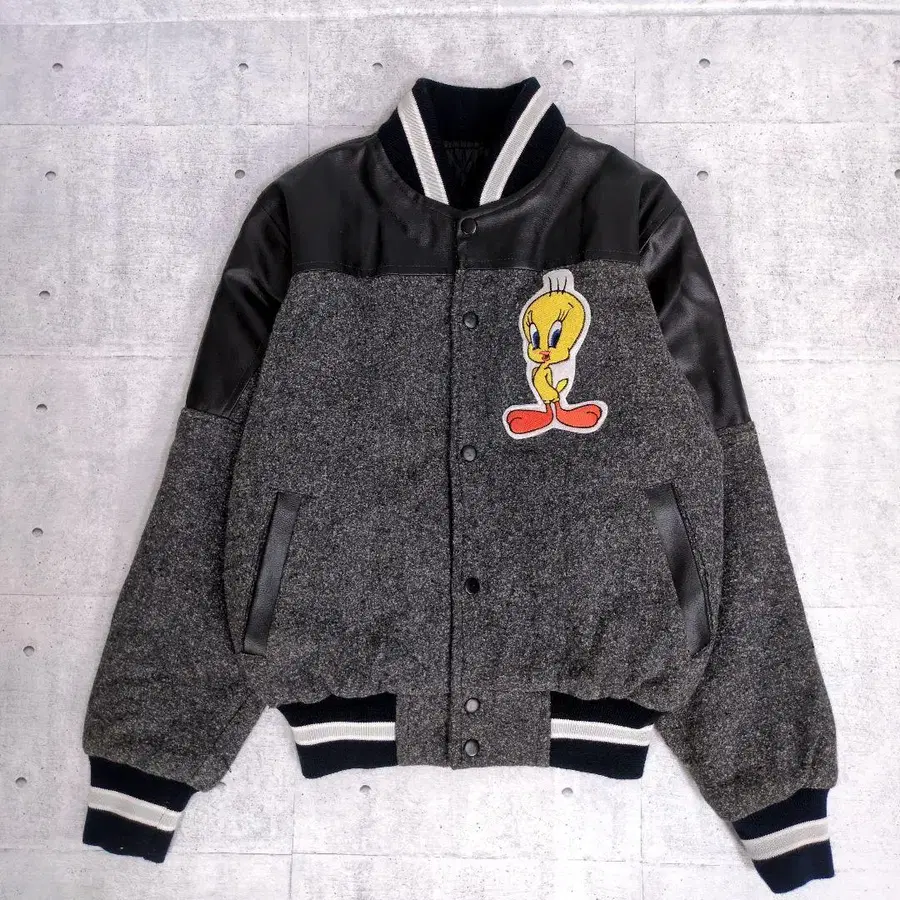 워너 브라더스 트위티 바시티 자켓 가죽 절개 와펜 자수