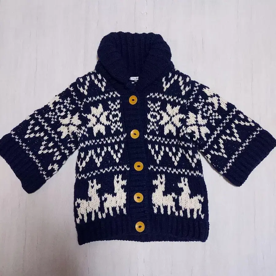 7부 소매 눈꽃 패턴 니트 가디건