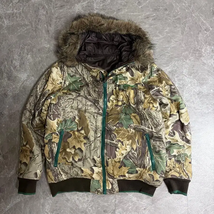 y2k 00s 헤이세이 그런지 퍼 리얼트리 패딩 자켓 트리 카모