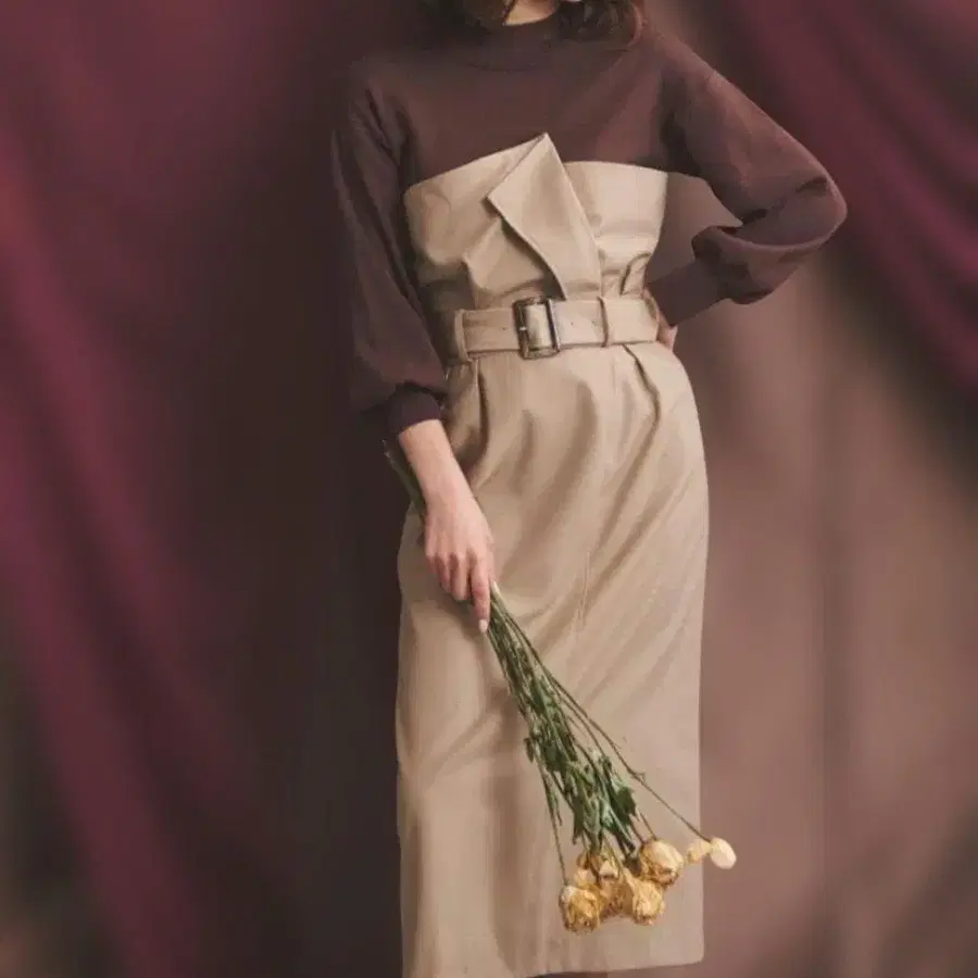 Noela 하이웨스트 타이트 도킹 원피스 베이지
