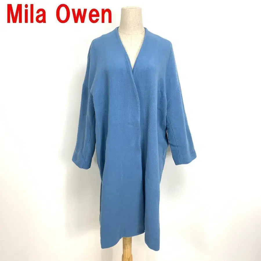A4762 미라 오웬 롱 코트 울 노카라 파랑 스카이블루 F