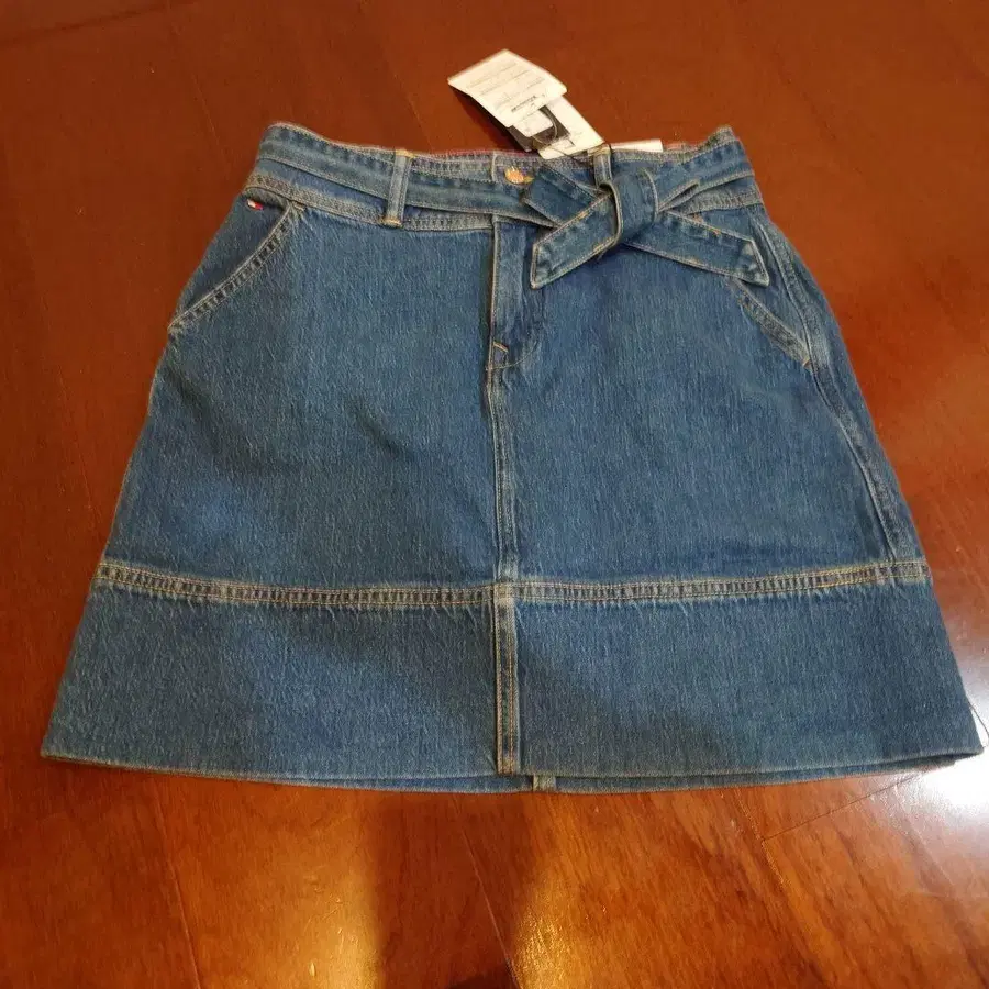 리본이 달린 데님 미니스커트, 캐주얼 스타일에 최적. - 브랜드: Tommy Hilfiger - 색상: 데님 블루 - 디자인: 리본 포함 허리 - 스타일: 미니스커트 A라인 - 소재: 데님 기장 45 정가 13000엔