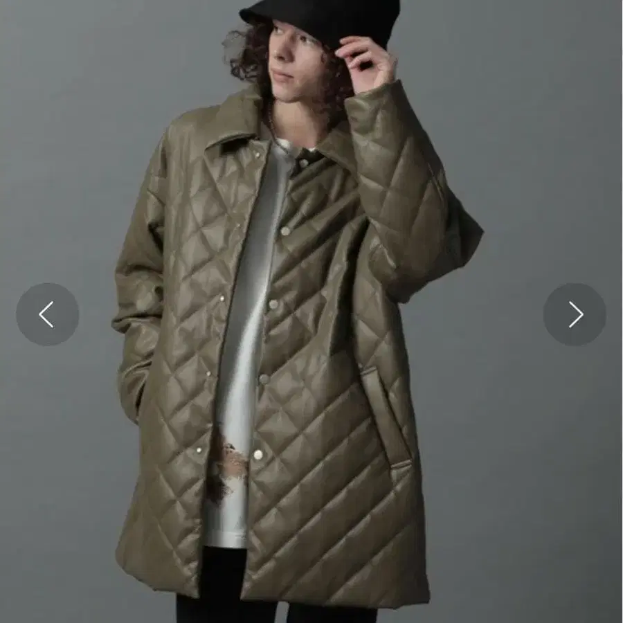 새상품급 HARE 합성 가죽 퀼팅 블루종 카키