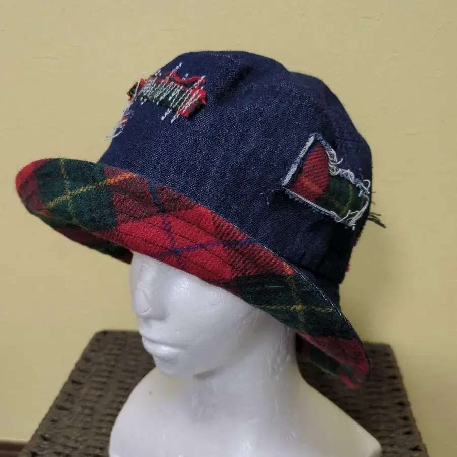 데님 소재의 패치워크 버킷햇, 리메이크풍 디자인. 리버서블 - 색상: 데님/체크 - 디자인: 패치워크 - 스타일: 버킷햇 - 소재: 데님과 울 체크 - 특징: 리메이크풍 디자인 방문해 주셔서 감사합니다.