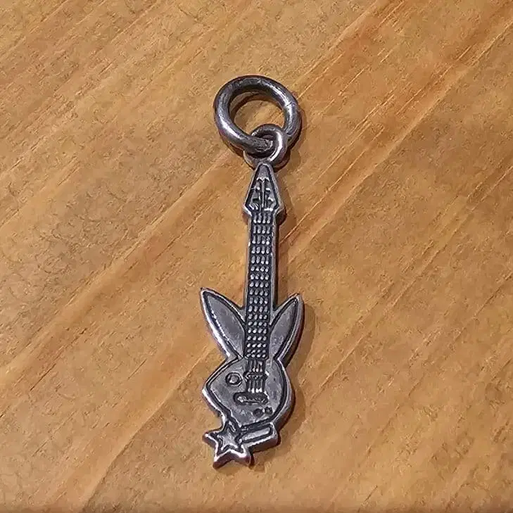 토끼 귀가 특징인 기타 모양 펜던트 탑. - 소재: 금속제 - 색상: 실버 - 뒷면: 심플한 디자인 20년 전에 구제 의류 매장에서 구매한 정체불명의 펜던트 탑입니다. 상태는 사진과 같이 미세한 흠집이 있습니다. 반품 등은 접수하지 않으니 부탁드립니다.