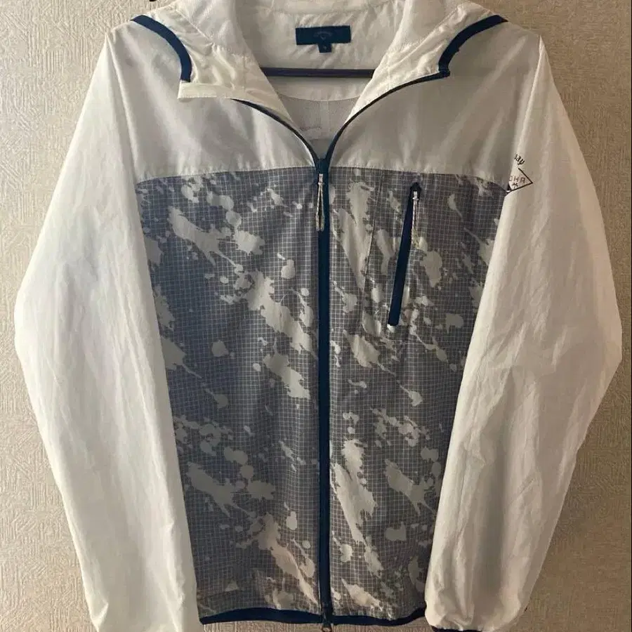 Callaway 후드 부착 윈드 브레이커 브랜드: Callaway 사이즈: M 디자인: 후드 부착 색상: 화이트, 그레이 안감: 메쉬 포켓: 좌우 각 1개, 가슴 1개, 허리 1개 총 4개 새상품과 완벽한 상태를 원하시는 분은 삼가해 주시기 바랍니다.