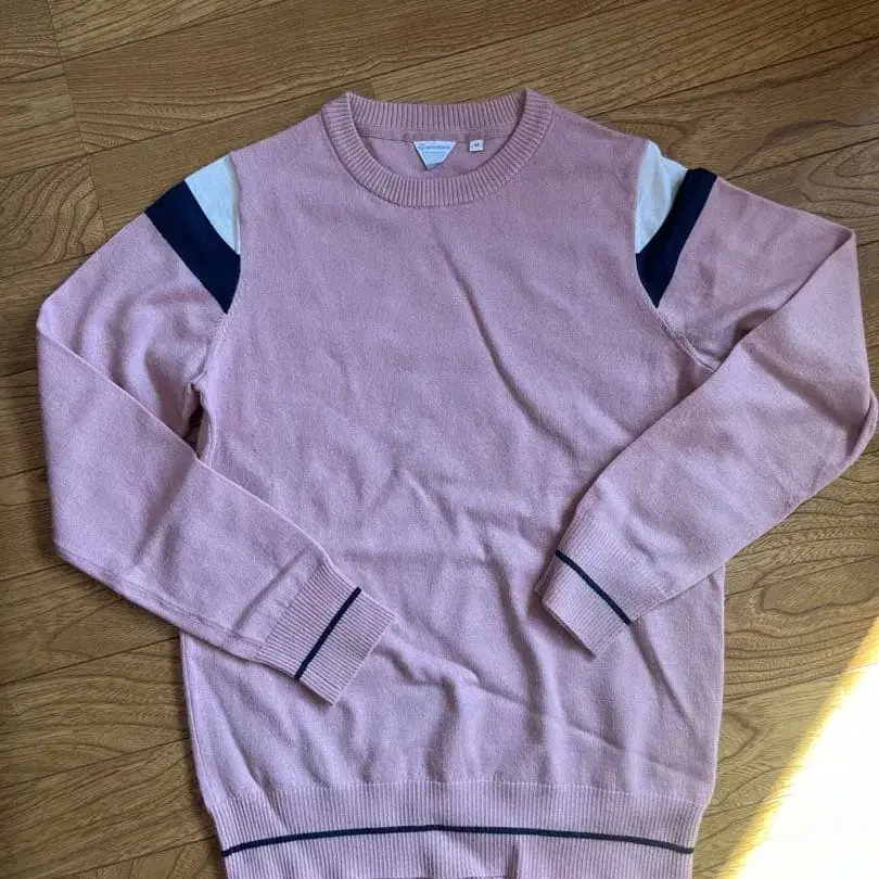 따뜻한 가을 햇볕 속 골프에 딱 맞는 핑크 니트입니다. M 사이즈이지만, 약간 슬림한 편이라고 생각합니다. - 색상: 핑크 - 디자인: 긴팔, 어깨에 네이비와 화이트 악센트 - 로고: TaylorMade 로고 - 사이즈: M