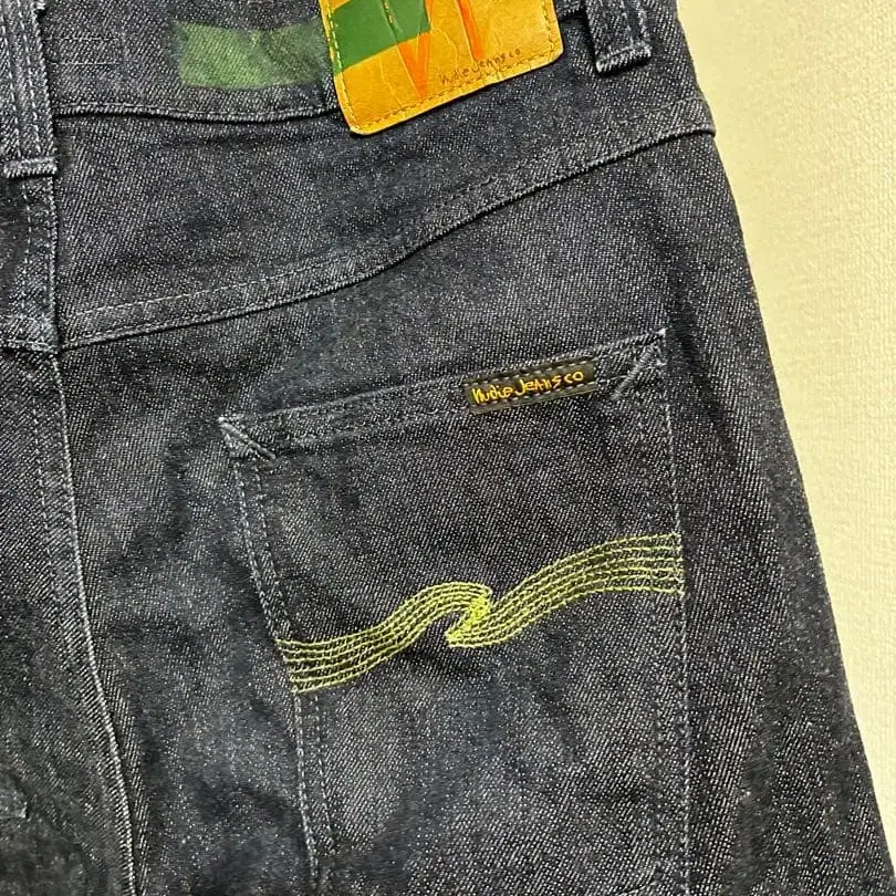 2회 착용. 원워시 처리되었습니다. 원워시 처리되어 약간 타이트합니다. 백 포켓에 파도 무늬 자수가 들어간 다크 데님 팬츠. - 브랜드: Wade Jeans - 사이즈: 33/28 - 디자인: 백 포켓 파도 무늬 자수 - 색상: 다크 데님 얼룩, 찢김, 냄새 등 - 없음 #데님 #청바지 #청바지 #누디진 #빈티지데님