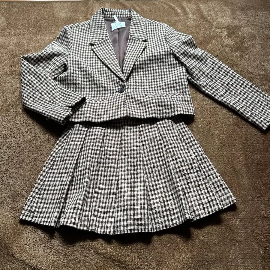 • 미사용 새상품 ZARA(자라) 브라운 체크 무늬 상의 스커트 상하의 셋업