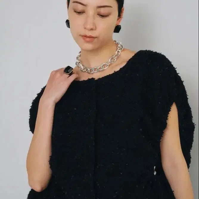 chieko+ 트위드 볼 베스트 블랙 36 오늘 한정