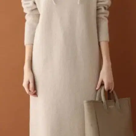 후드 부착 베이지 롱 니트 원피스 38 캐시미어 혼방