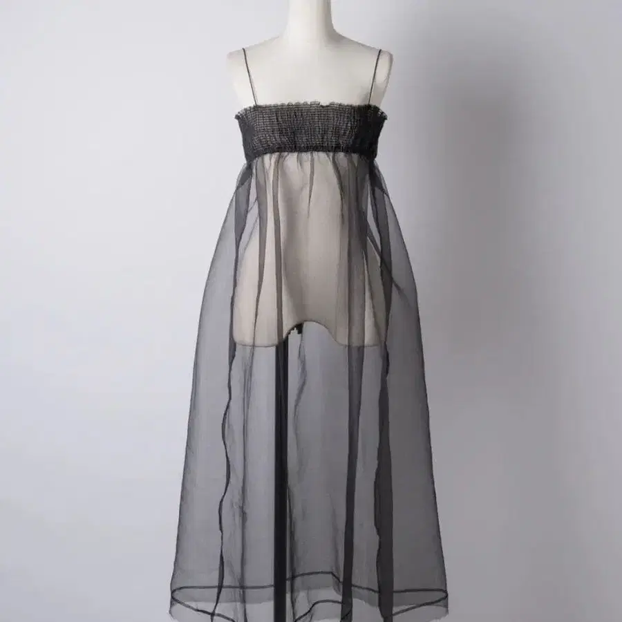 롱 원피스 슬리브리스 드레스 블랙 시스루 시어