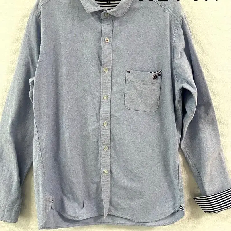 스트라이프 옷깃이 특징인 BEAMS HEART의 라이트 블루 셔츠, XL 사이즈이며 가슴 포켓이 있습니다. - 브랜드: BEAMS HEART - 사이즈: XL - 색상: 라이트 블루 - 디자인: 스트라이프 옷깃 - 포켓: 가슴 포켓 있음 - 디테일: 버튼의 빨간색 악센트 방문해 주셔서 감사합니다.