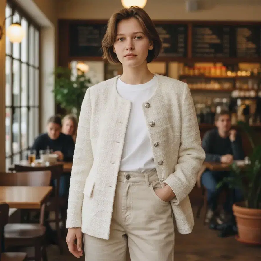 칼 라거펠트 트위드 노카라 자켓 셋업 M