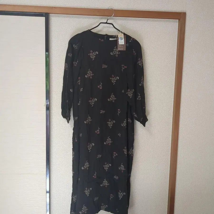 대폭 할인! 꽃무늬 실크 터치 긴팔 오가닉 코튼 셔츠 원피스