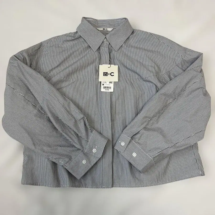택 포함 새상품 UNIQLO:C 코튼 숏 셔츠 그레이 스트라이프