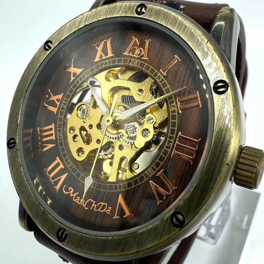 [ 작동 ] ManChDa 손목시계 스켈레톤 빈티지 남성용 가죽