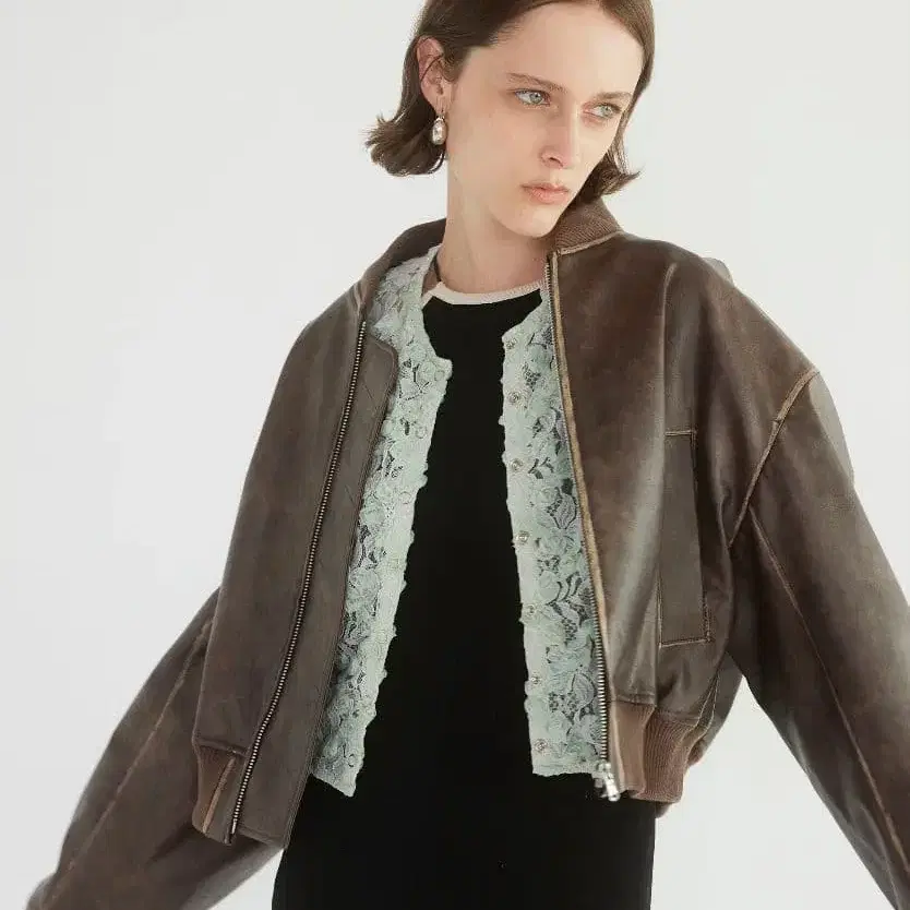 • CHICO 인조 가죽 루즈 지퍼 블루종 브라운