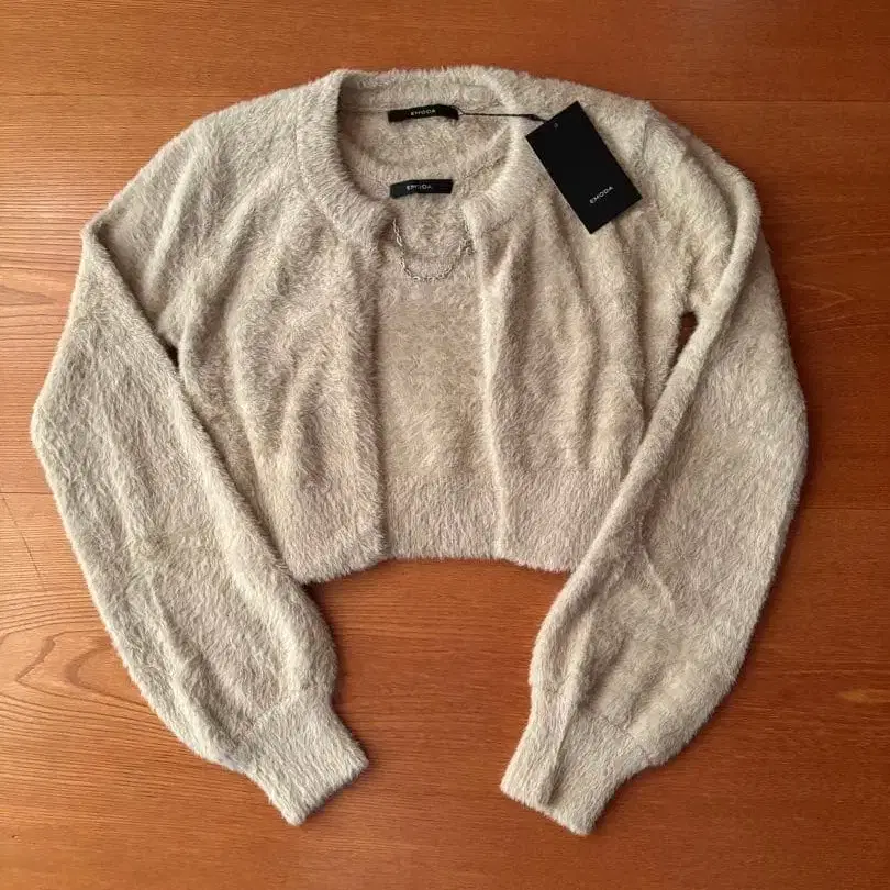 미사용 새상품 택 포함 EMODA 베이지 트윈 니트 크롭 니트