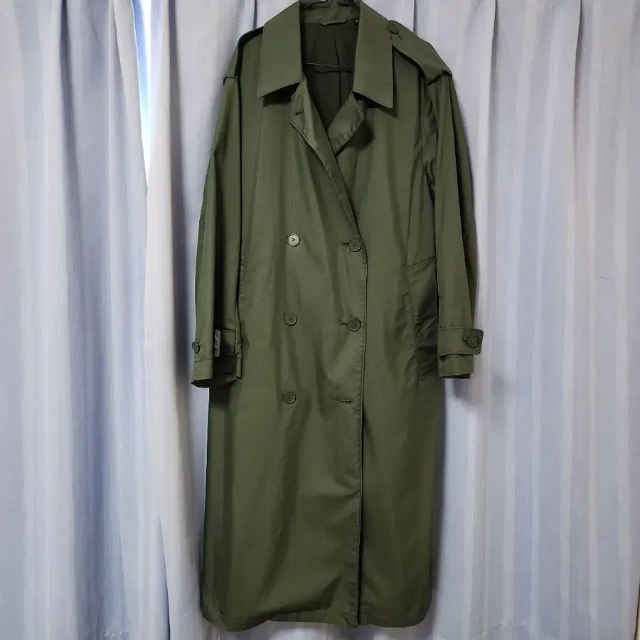 롱 기장의 트렌치코트입니다. 여성용 상품이지만 남성도 착용 가능합니다. 1회 착용 후 보관했습니다. 벨트 포함. 배송 시 접어서 보내므로 주름이 생길 수 있는 점 양해 부탁드립니다. - 색상: 다크 그린 - 스타일: 트렌치코트 - 사이즈: L 방문해 주셔서 감사합니다.