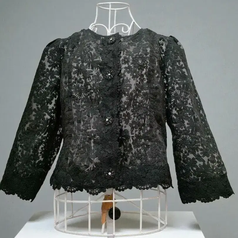 슈퍼 뷰티 블랙 레이스 노카라 자켓